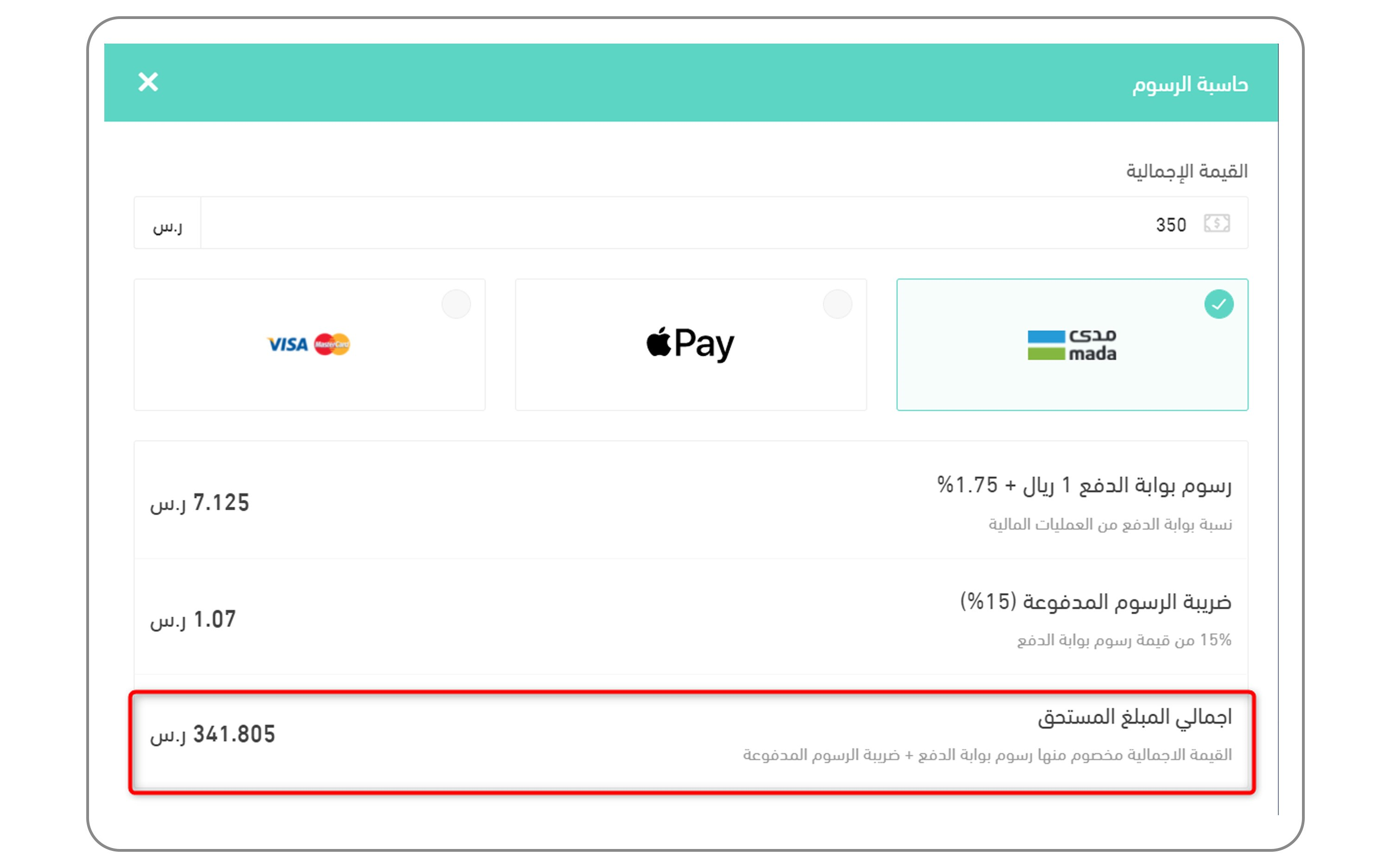* مدى: 1 ريال + 1.75% + ضريبة رسوم الدفع 15%